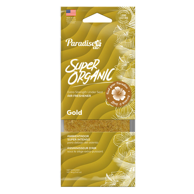 SO-6010PK72: SUPER ORGANIC UNDER THE SEAT AIR FRESHENER – GOLD – PARADISE AIR